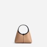 Versatile and minimally designed in a curved silhouette. Hobo is made from smooth Italian leather detailed with contrasting black leather trim. Sleek interior is lined in micro suede textile. The stud closure at the top keeps your belongings secure. This micro version has a detachable shoulder strap and just enough room inside for a large phone. lipstick and cards.