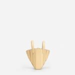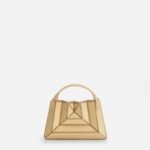 Its exterior design is a surrealist dream. reminiscent of a maze-like structure protruding outwards. with sharp. clean lines. and a 3D façade. It has a suede drawstring top. securing your belongings on the go.