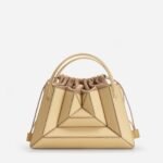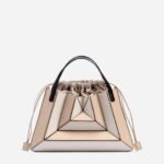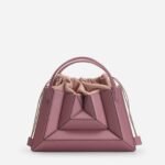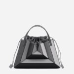 Its exterior design is a surrealist dream. reminiscent of a maze-like structure protruding outwards. with sharp. clean lines. and a 3D façade. Opening the top handles reveals a suede drawstring top edge. securing your belongings on the go.